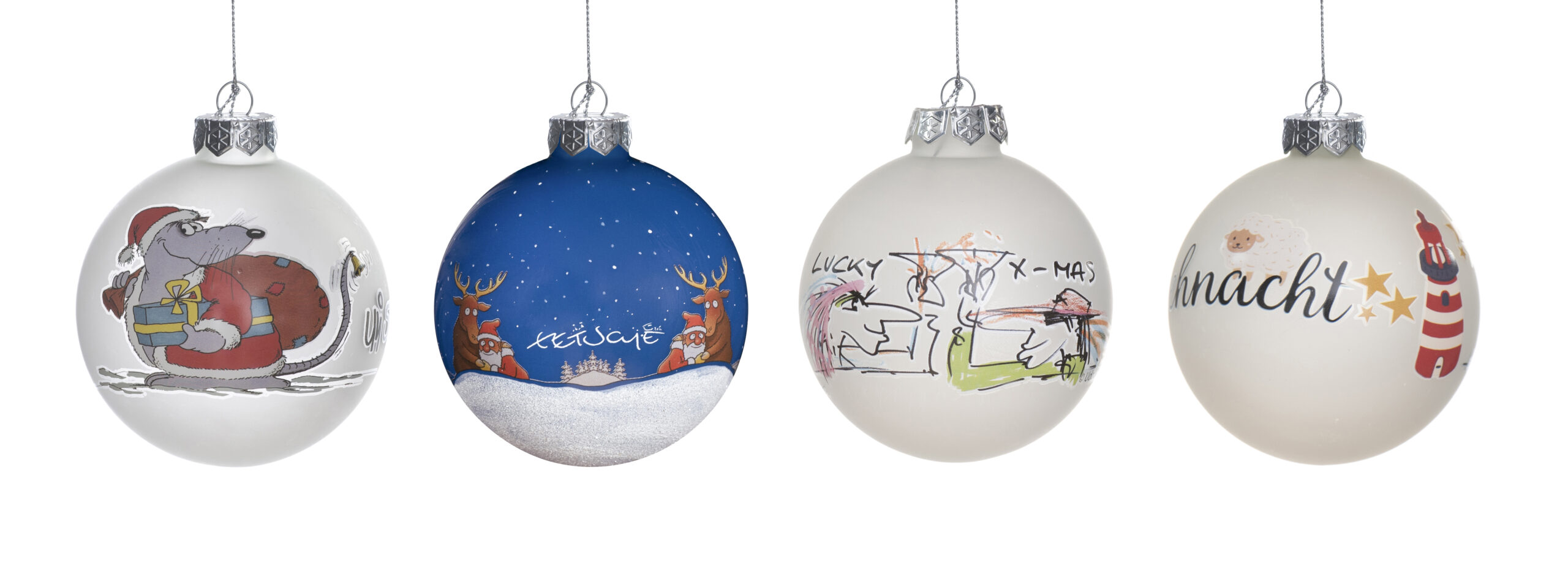 Von Udo Lindenberg exklusiv für Chari-Christmas gestaltet. Glaskugel mit Aufdruck. Einzeln verpackt im goldenen Schmuckkarton. ø 8 cm.
